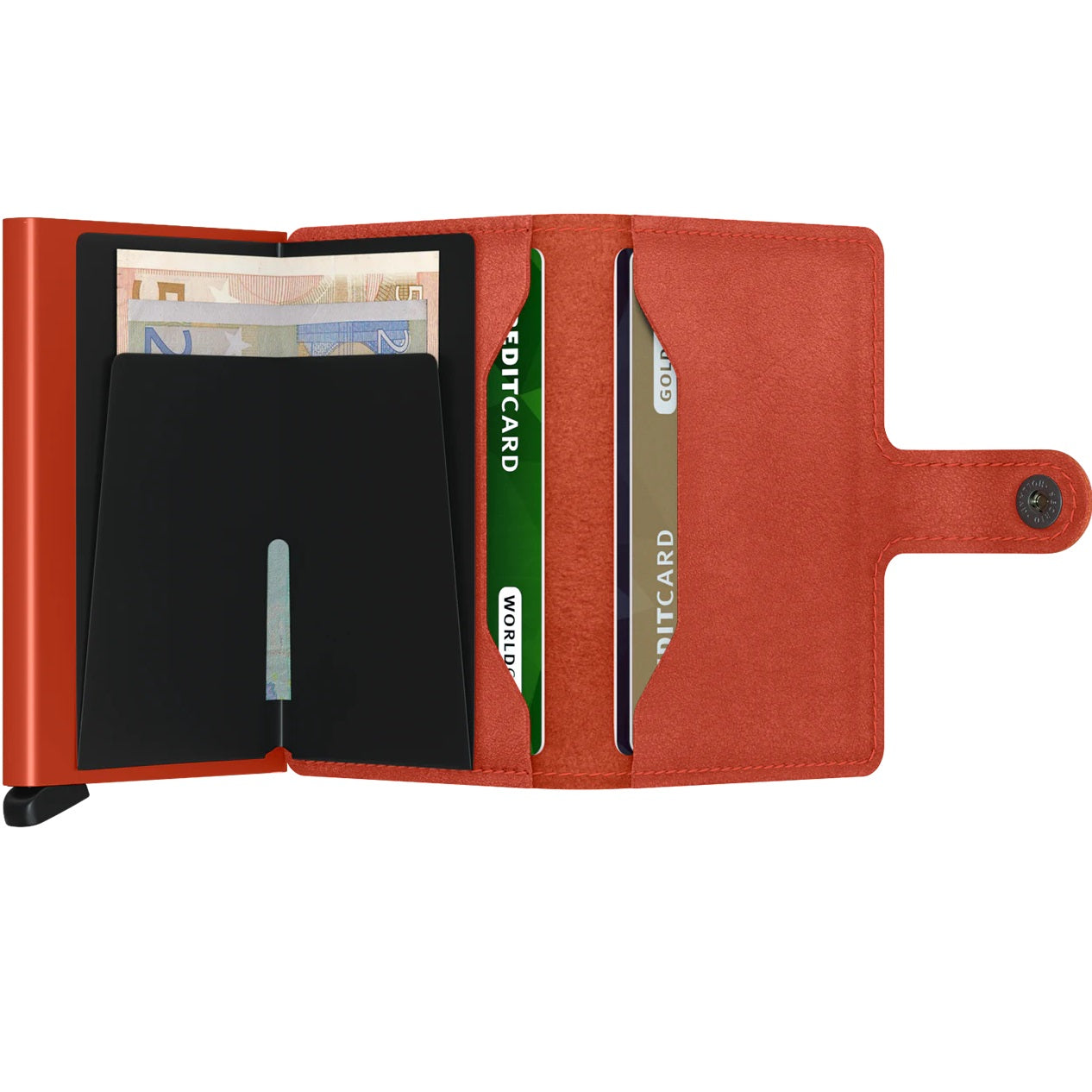 Small in size and surprisingly large in storage capacity, the Miniwallet combines the best of both worlds. The exterior holds banknotes, receipt and cards, while the aluminium Cardprotector allows you to slide out cards with one simple motion and protects them from bending, breaking and unwanted wireless communication.