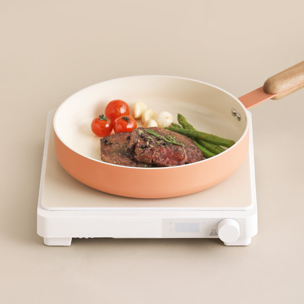 Full induction base works with gas, electric, induction, and halogen stovetops