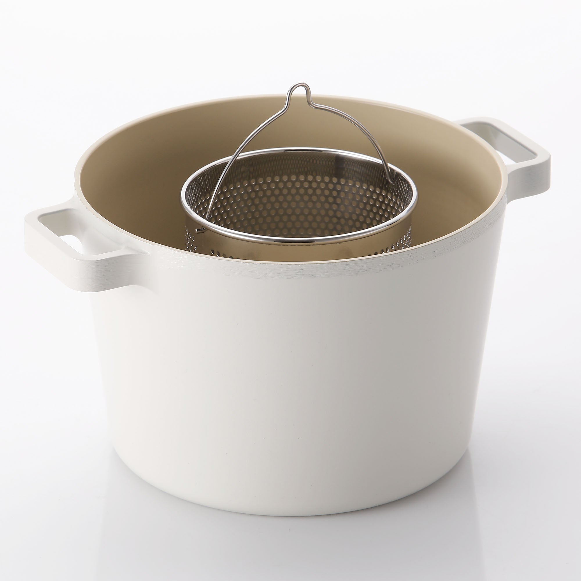 • Award-Winning Design: Scandinavian-inspired with simple round contours, matte off-white exterior, glossy sand-colored interior, and wooden handles. Silicone rimmed glass lid for precise and quiet closure.