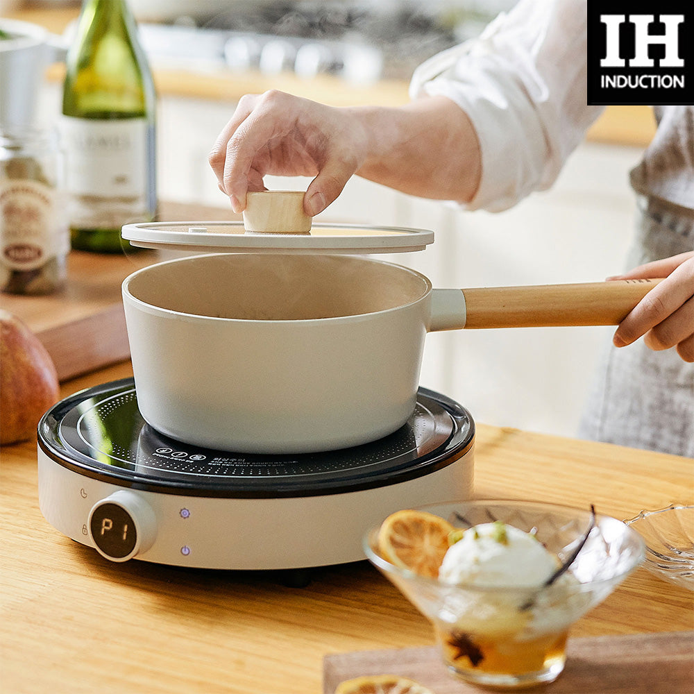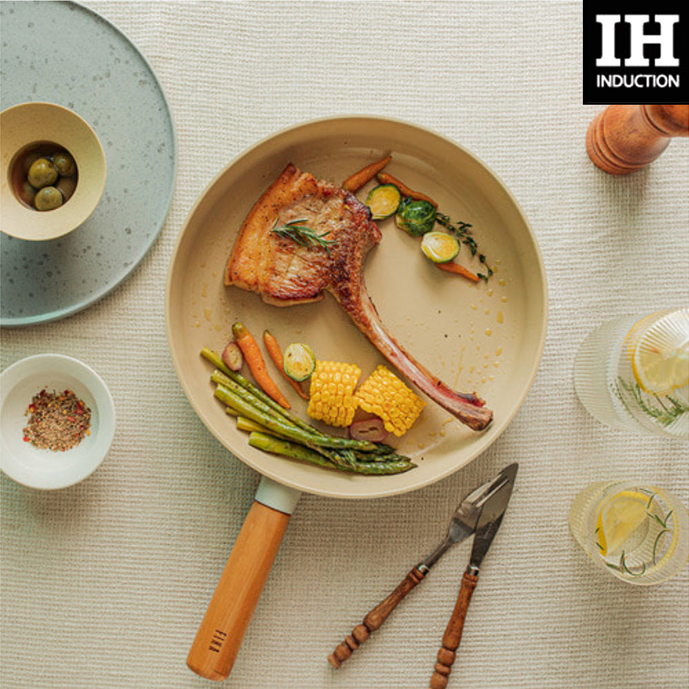 Award-Winning Design: Scandinavian-inspired with simple round contours, matte off-white exterior, glossy sand-colored interior, and wooden handles. Silicone rimmed glass lid for precise and quiet closure.