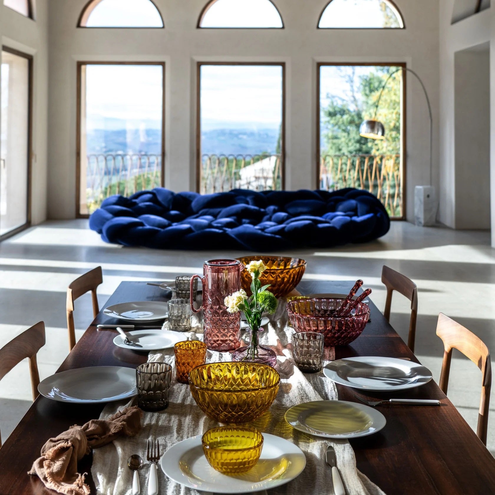 Pitcher in special Bio-Based* Acrylic Crystal, a modern, renewable, organic, non-fossil material obtained from vegetable waste that’s also 100% recyclable.