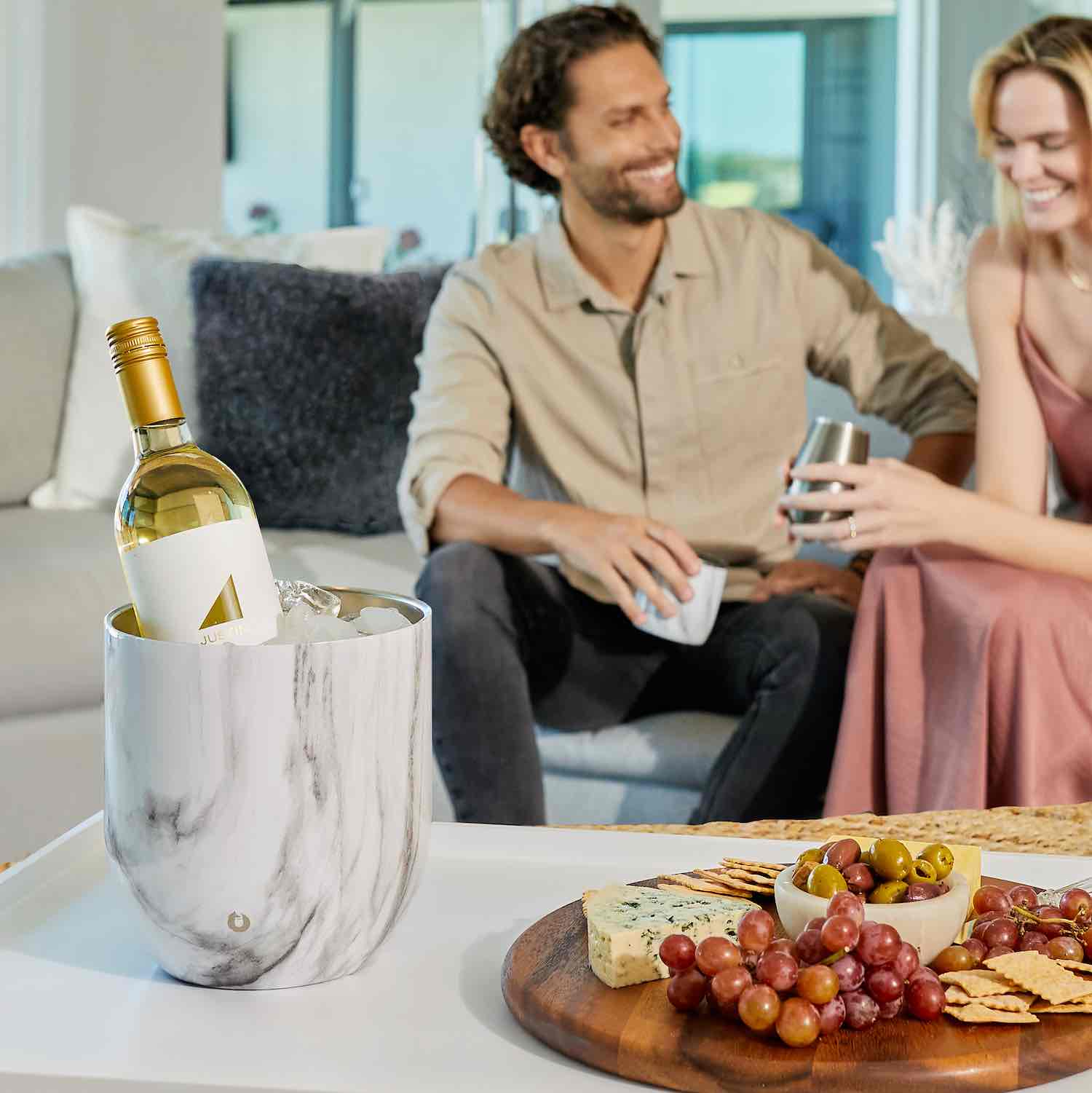 Make an elegant addition to your barware assortment with our double walled and insulated ice bucket paired with four color coordinated rocks glasses. Insulated to keep ice from melting and are sweat free so they are ideal for entertaining.