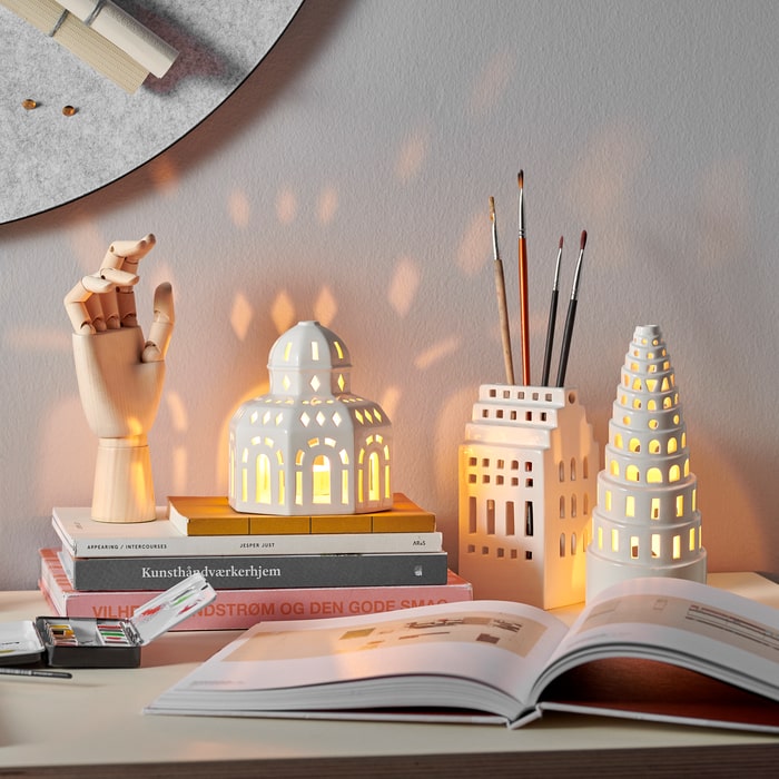 The Urbania Lighthouse High Tower grows skyward in a spiral, with varying sizes of windows. Symbolizing visibility and overview, the lighthouse is produced in glossy glazed ceramics and is a modern interpretation of the urban space with an elegant and exclusive expression.
