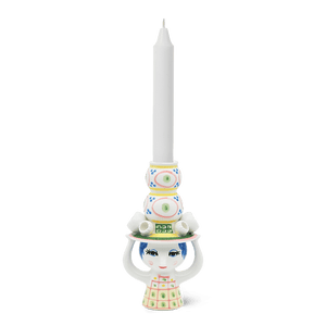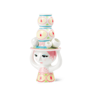 Bjørn Wiinblad Lady with Hat Candle Holder, Pink/Yellow, H: 6.3"