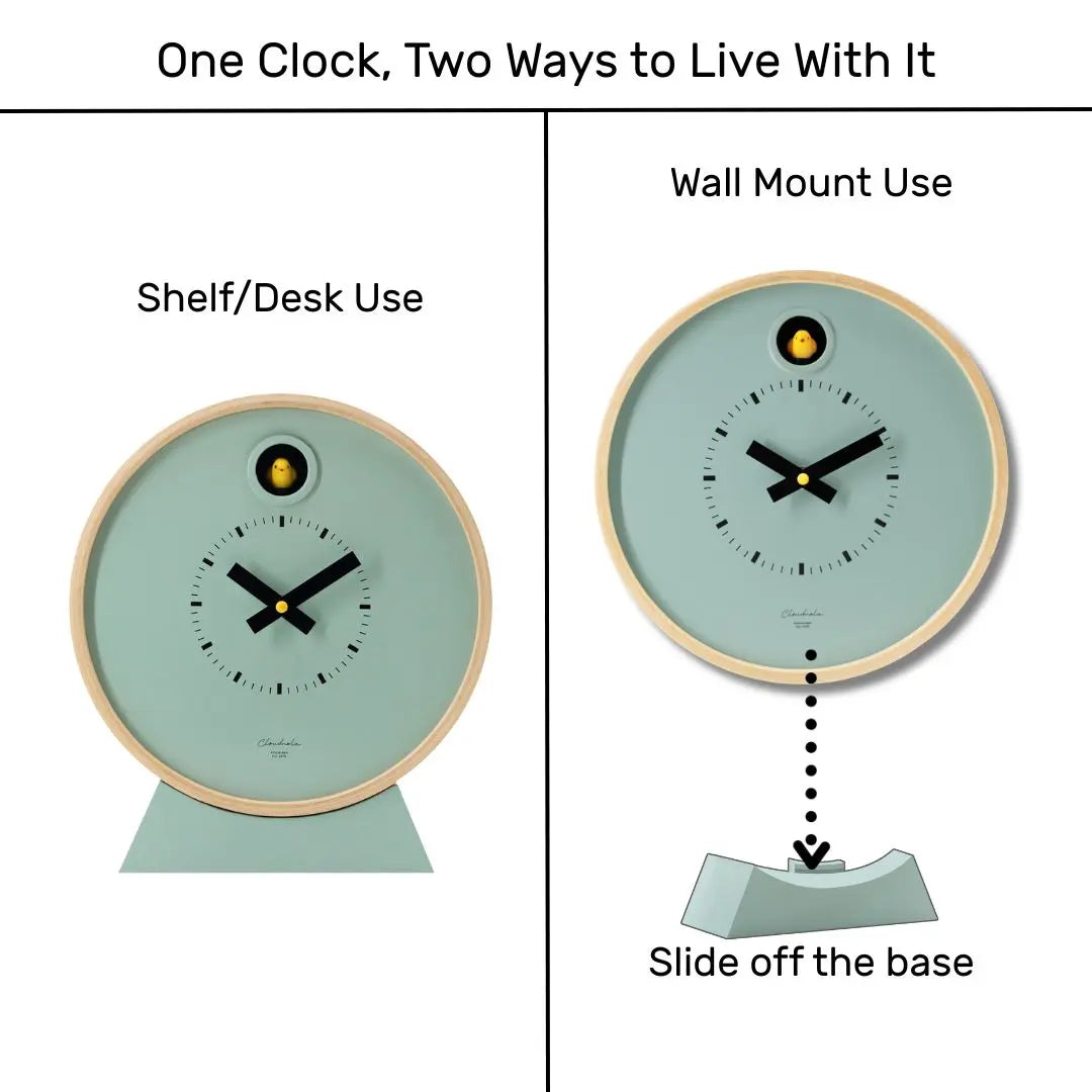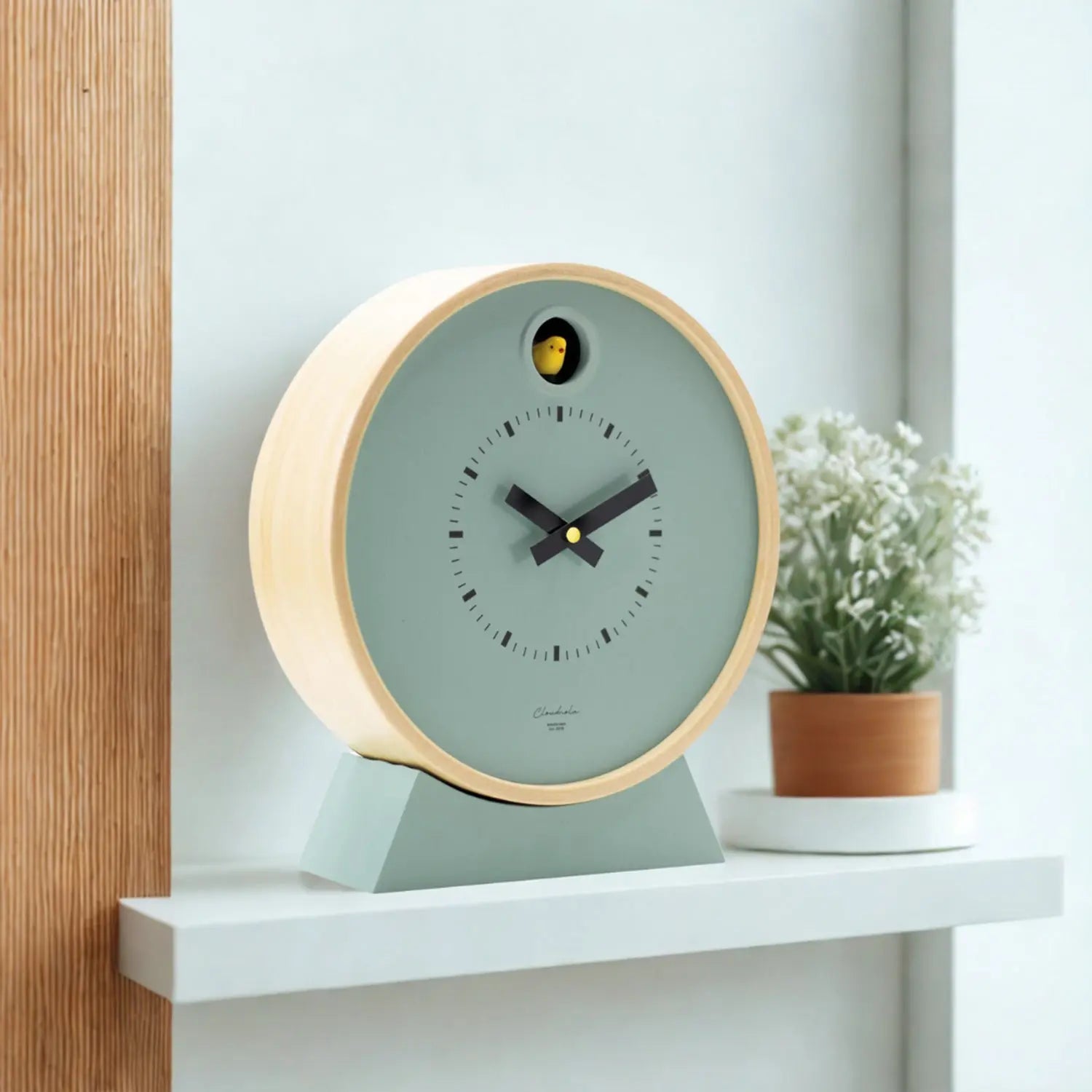 This modern cuckoo clock with stand is ideal for apartments, offices, or anywhere you want a subtle but stylish timepiece.