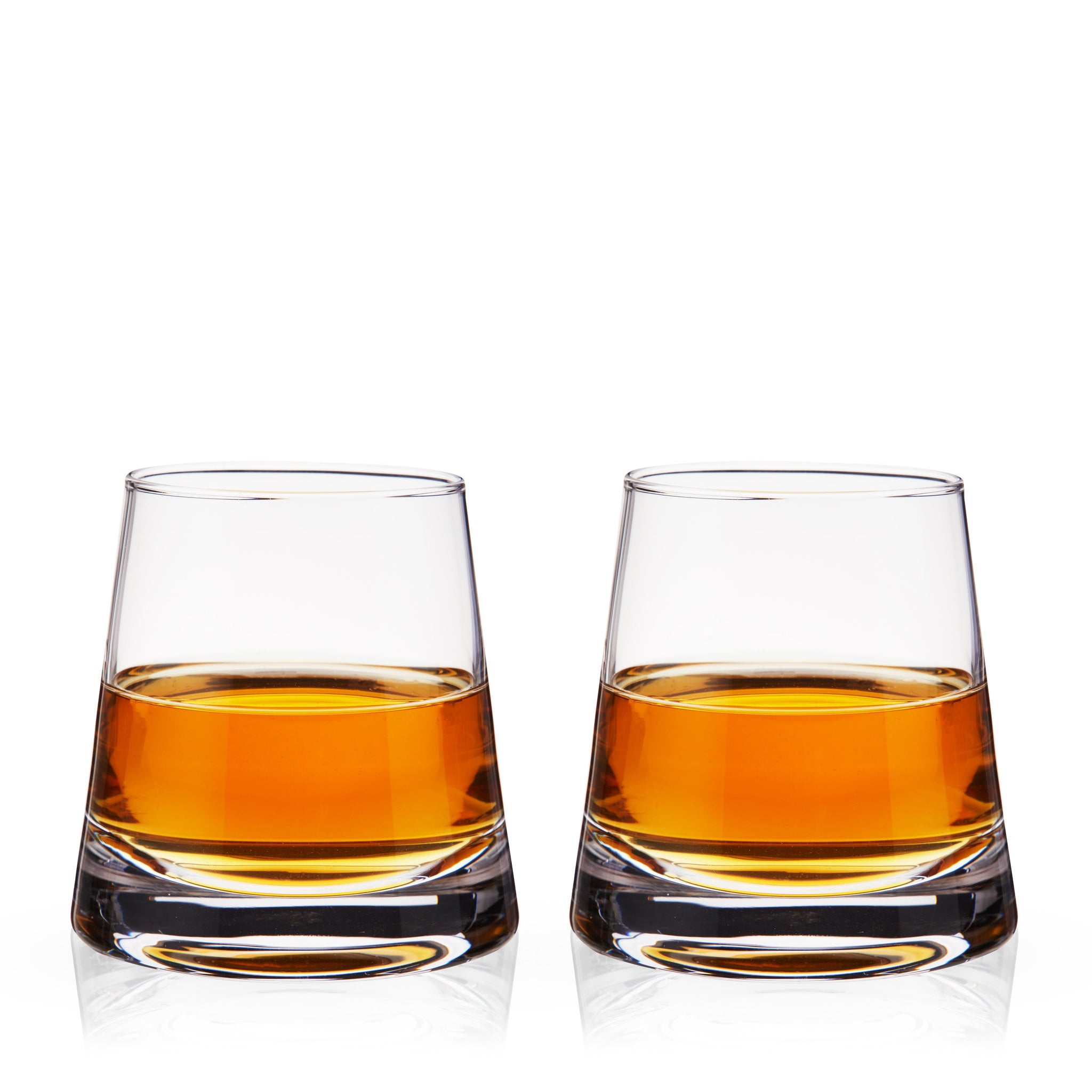 These whiskey glasses have a unique tapered silhouette that creates a striking pyramid shape. Perfect for sipping Scotch neat or enjoying an Old Fashioned, these tumblers have a heavy base and a quiet elegance that brings modern flair to your home bar.