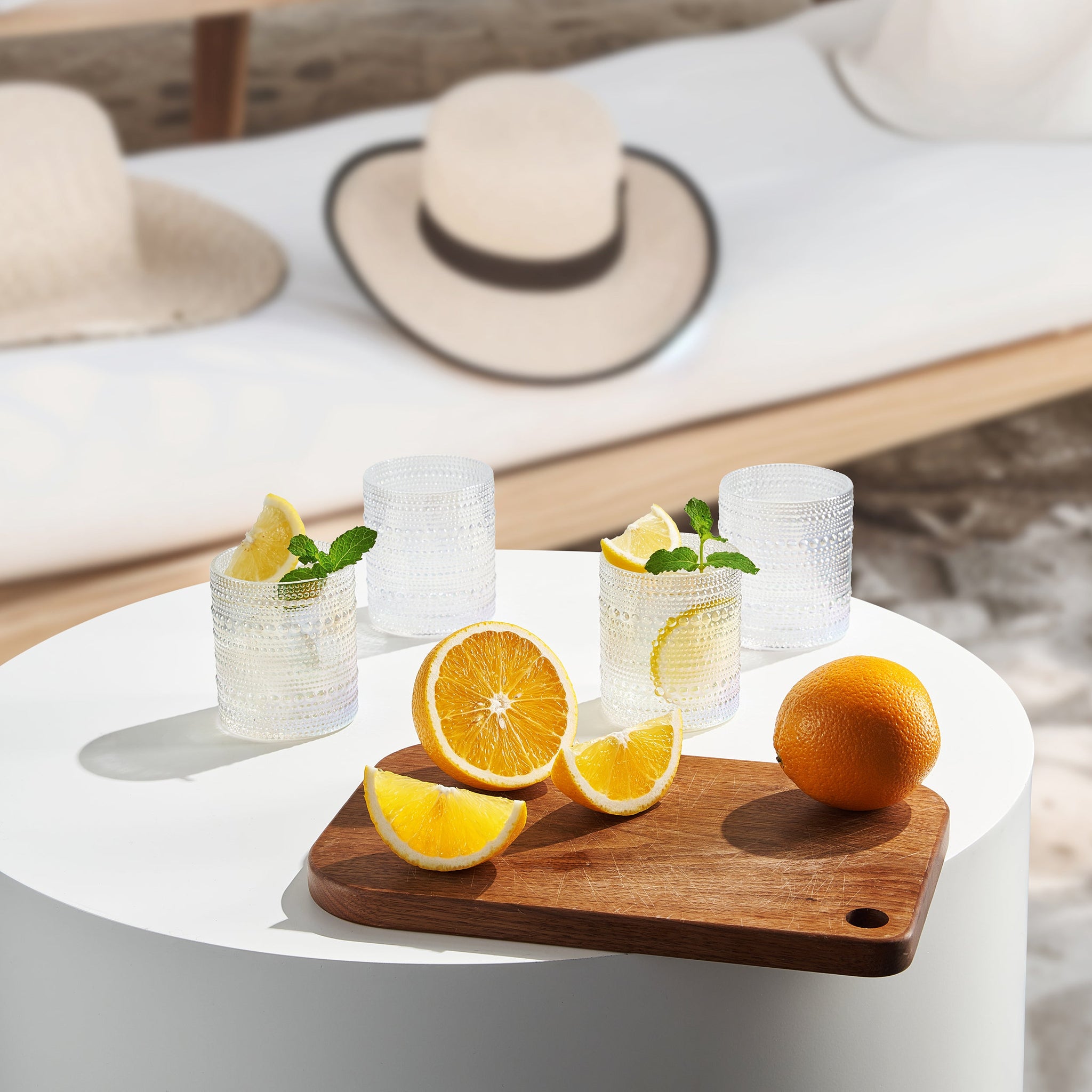 Classica Hobnail Lowball Glassware, Set of 6. 3.6"H X 3.15"dia. 11 ounces.