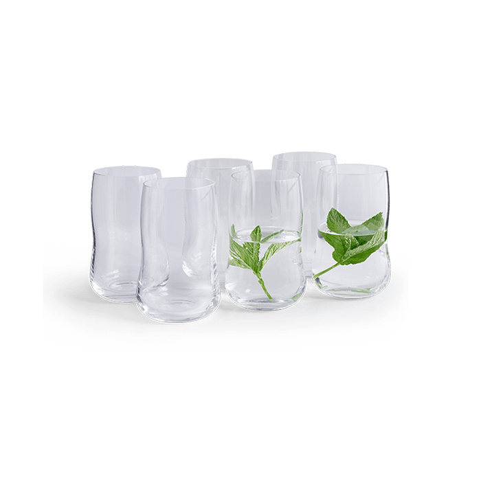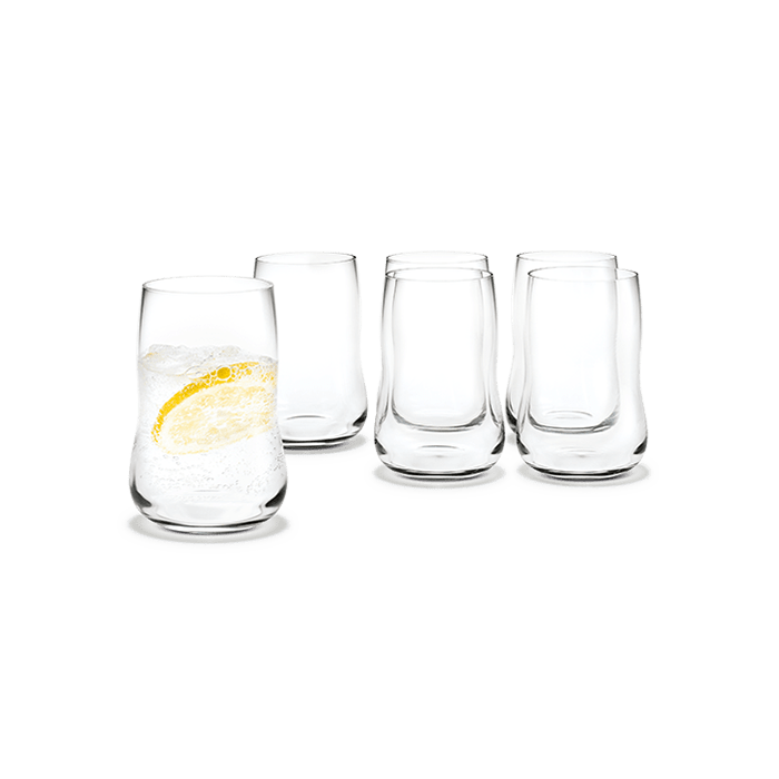 Peter Svarrer's large tumblers in the Future range are both capacious and comfortable to hold. The glass, which has a volume of 8.5 oz, is ideal for everything from a cold beer or a long drink to colorful smoothies. The tumbler is also available in a slightly larger version with a volume of 12.5 oz. Sold in sets of six.