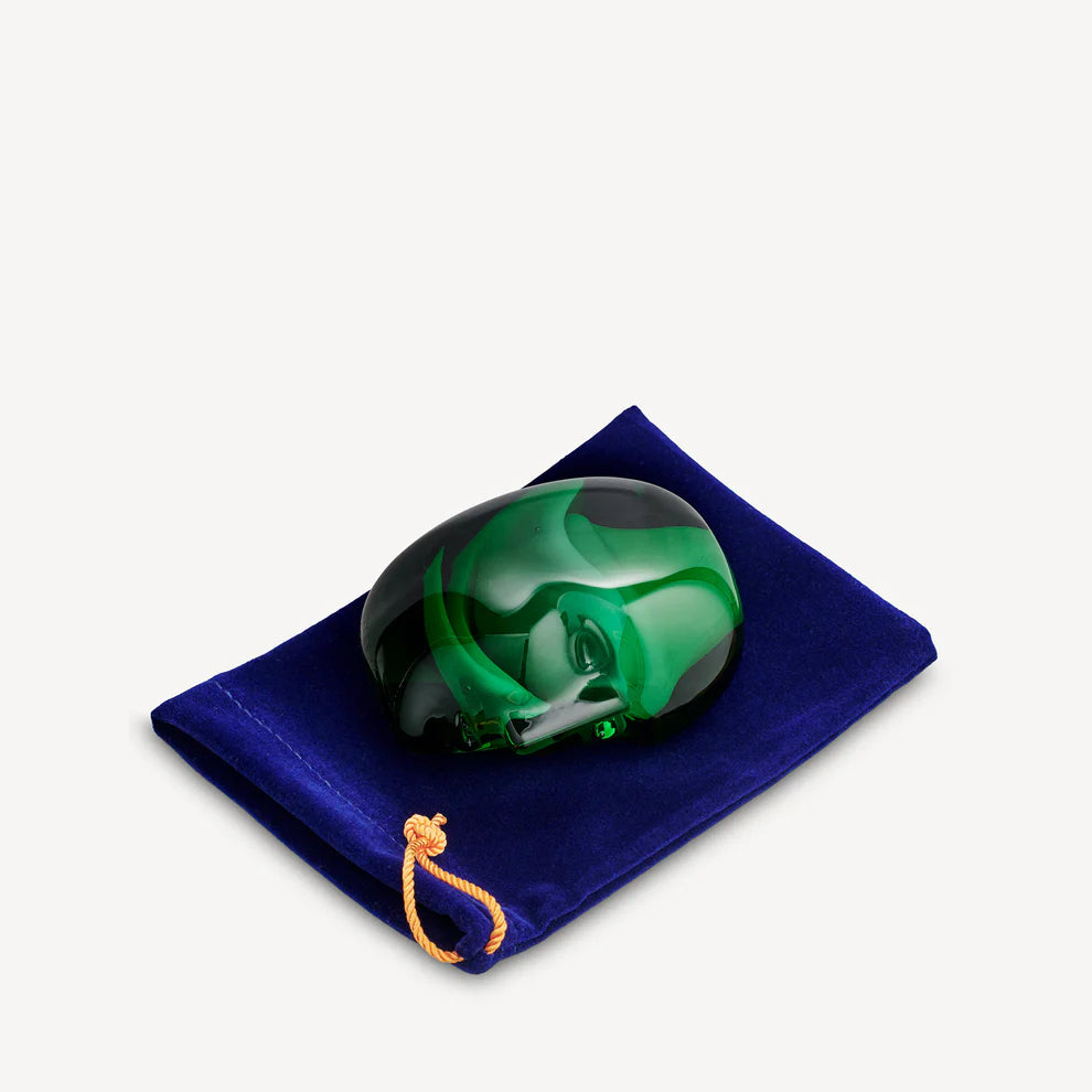 Walk With Me is made of green, reflective glass. The unique object is handmade at Kosta Glassworks in Sweden and is part of the Kosta Boda Artist Collection. Walk With Me includes a velvet bag and an exclusive gift box.