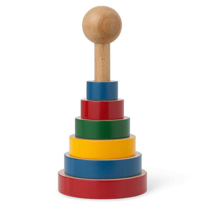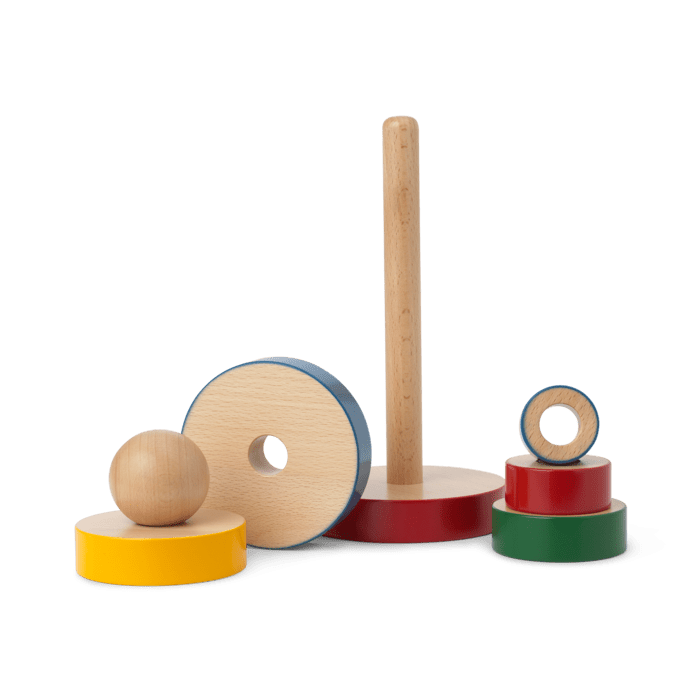 The nostalgic Pyramid tower in clear primary colors is an original design from Kay Bojesen. The Pyramid tower is a nod to the childhood of us all filled with intuitive play and learning. The Pyramid tower is CE approved from 10 months so the little ones can have the pleasure of playing with the charming and tactile wooden toy.