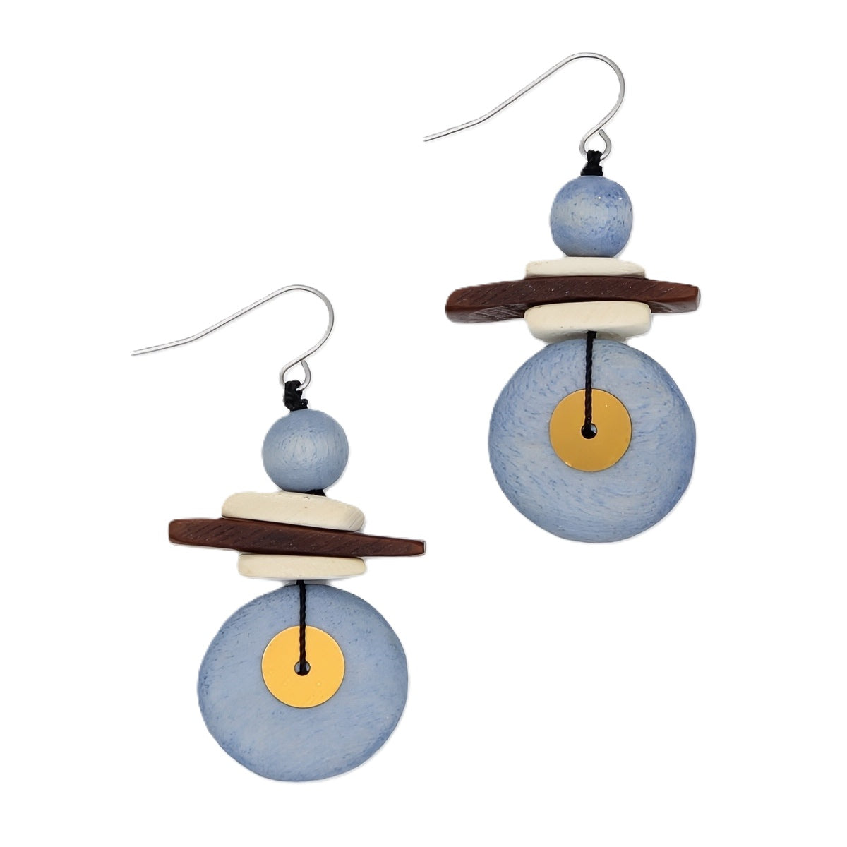 Complete you stylish look with Sylca's Assuta Lime Drop Earrings! These unique dangle earrings feature a mix of wood, gold, and round beads in blue, tan and brown. Not only are they lightweight for all-day comfort, but their artistic design makes a bold statement. Add a touch of creativity to any outfit!