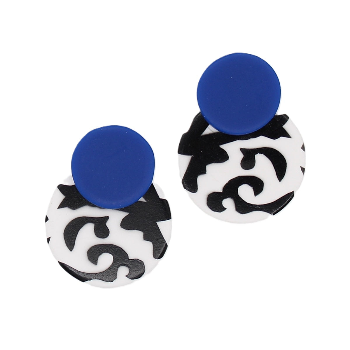 Make a statement with these Black White and Blue Lola Earrings! The hand-painted design on a white background adds a classic touch, while the black and blue accents make them truly unique. Perfect for any occasion, these earrings are a must-have for your jewelry collection.