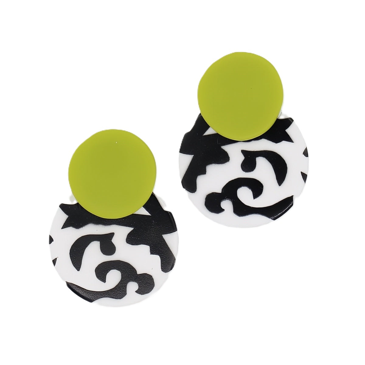 Make a statement with these Black White and Lime Lola Earrings! The hand-painted design on a white background adds a classic touch, while the black and lime accents make them truly unique. Perfect for any occasion, these earrings are a must-have for your jewelry collection.
