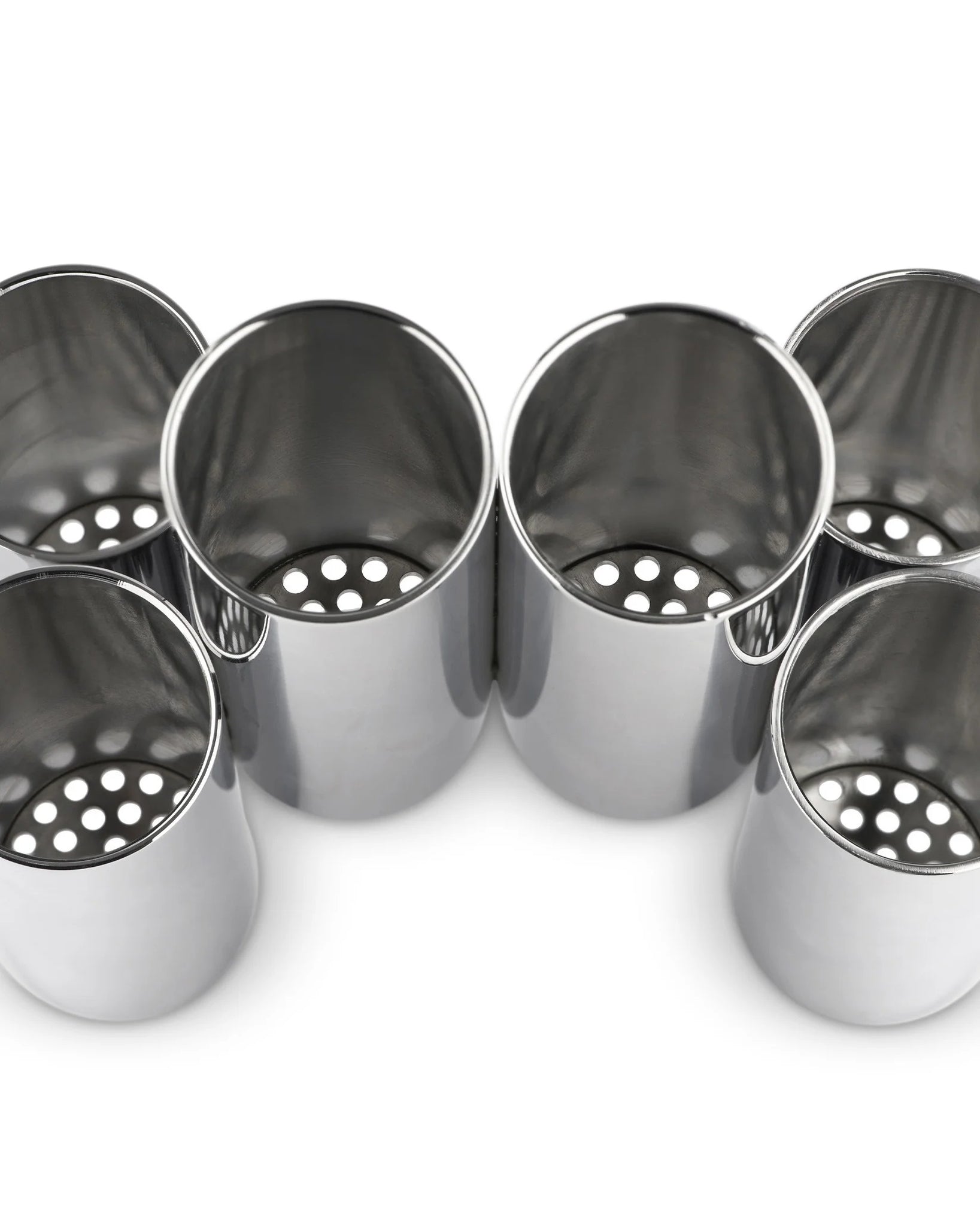 Patricia Urquiola presents the Canale cutlery holder that demolishes the limits of classic table settings, moving the cutlery to a single point in the center of the table, where everyone can reach them. This paves a new way, a focal point that becomes a communication channel, stimulating sharing and dialog. An highly theatrical object made of straight tubes that vibrate with reflected light, celebrating a new contemporary ritual.