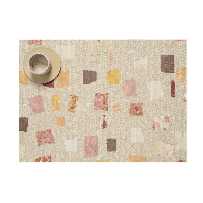 A playful homage to a venerable material, Pietra reimagines terrazzo’s medley of marble, granite, and quartz chips as a sleek, lightweight placemat that wipes clean and dries quickly thanks to Chilewich’s tightly woven, phthalate-free TerraStrand yarns. Multicolored forms of various sizes and textures create a lively yet refined printed surface that is at home on desks, vanities, countertops, and nightstands as well as tables. Suitable for indoor or outdoor use.