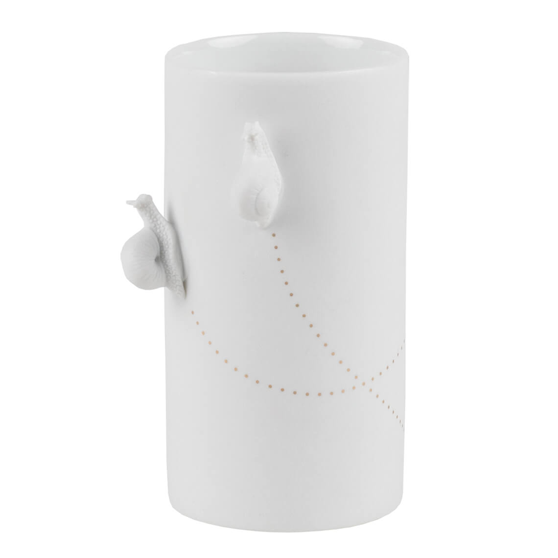 This beautiful matte white porcelain vase from Räder is incredibly special. Two tiny snails slowly glide up the vase to nibble on the petals of the flowers you place in it. They leave a magical golden trail. This beautiful vase is a mini fairytale.