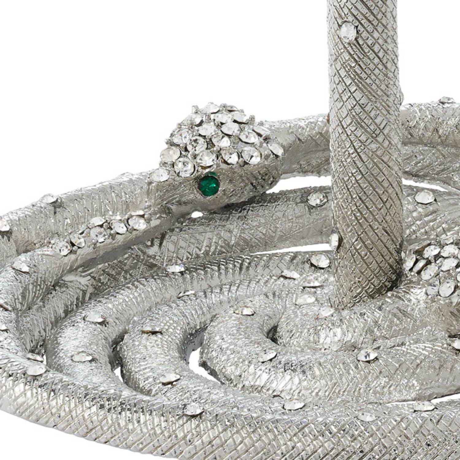 Celebrate the wisdom and mystery of the 2025 year of the snake with this chic gold or silver finished pewter serpent patterned ring holder. Encrusted with hand-set clear pavé European crystals and emerald green crystal eyes. Tarnish resistant. Signature luxury gift box included.