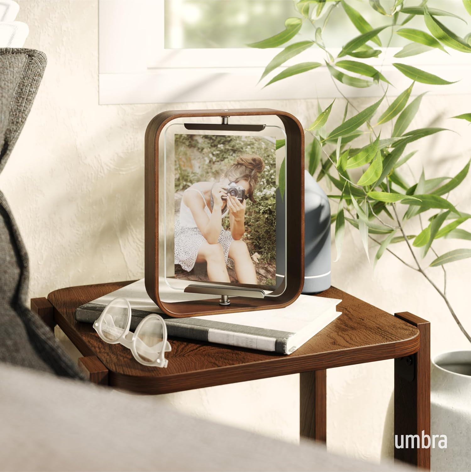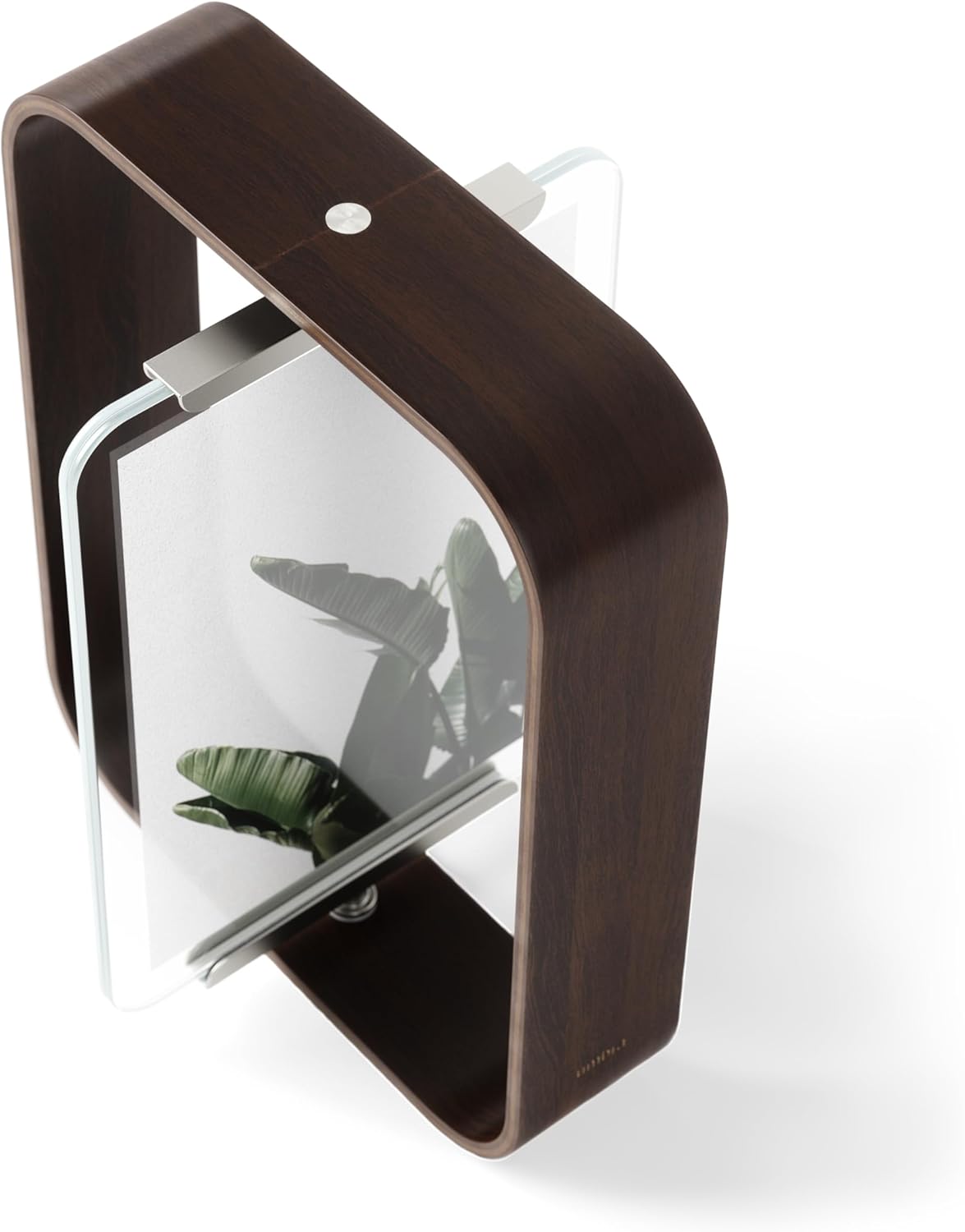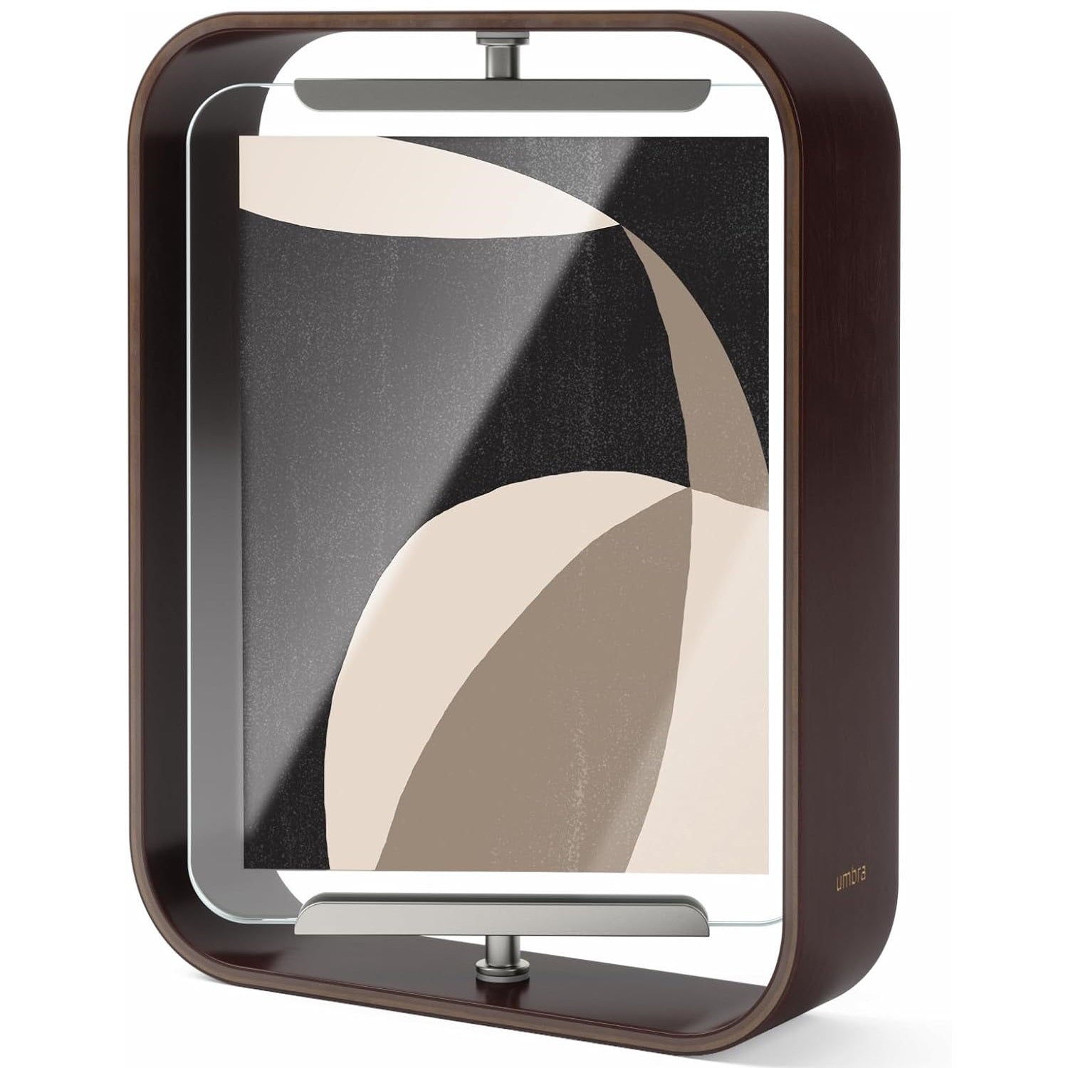 Made with natural wood. With soft curves, this desk frame seamless pivots or rotates, adding a unique touch to your typical picture frame. Can be flipped to easily showcase either portrait or landscape photos.