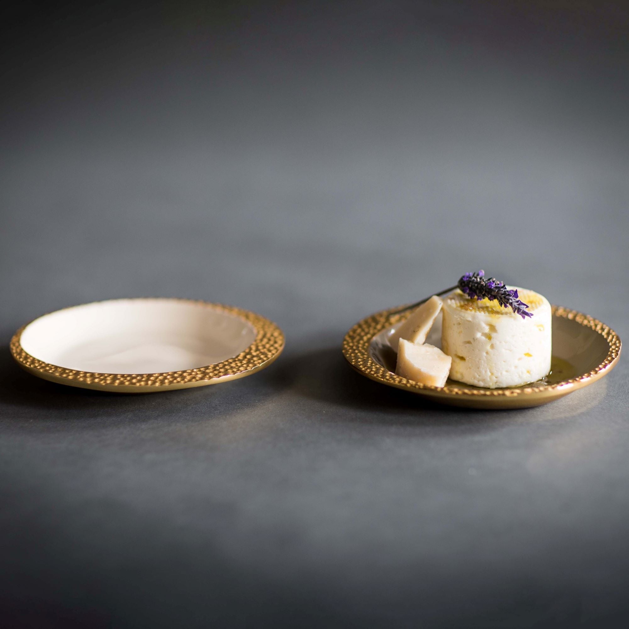 The Cosmos Round Plate captures the elegance of the stars, with hand-applied oyster or taupe enamel and gold-plated cosmos-inspired detailing. Perfect for serving or display, these plates are crafted from recycled aluminum and offer a touch of celestial beauty to any table setting.