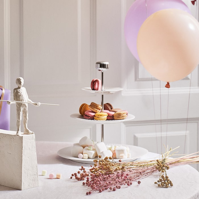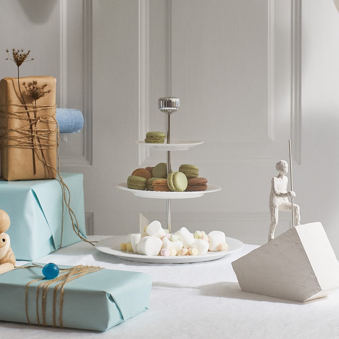 The cake stand is a beautiful three-tiered stand and very elegant when used for presenting cakes, chocolates, fruit, cheeses, or meats.
