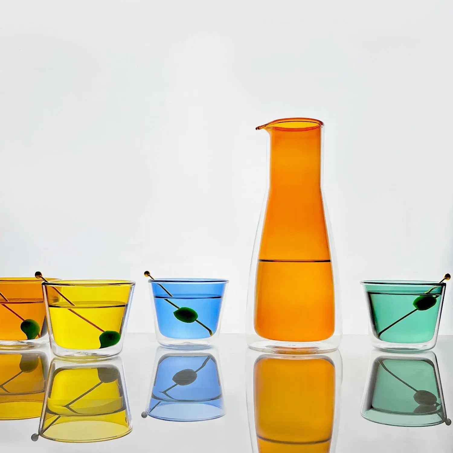 Crafted from durable glass, the Rocks Carafe Orange offers both reliability and elegance. The double-walled feature not only enhances insulation but also gives the carafe a sleek, modern appearance, making it a standout addition to any dining or kitchen setup.