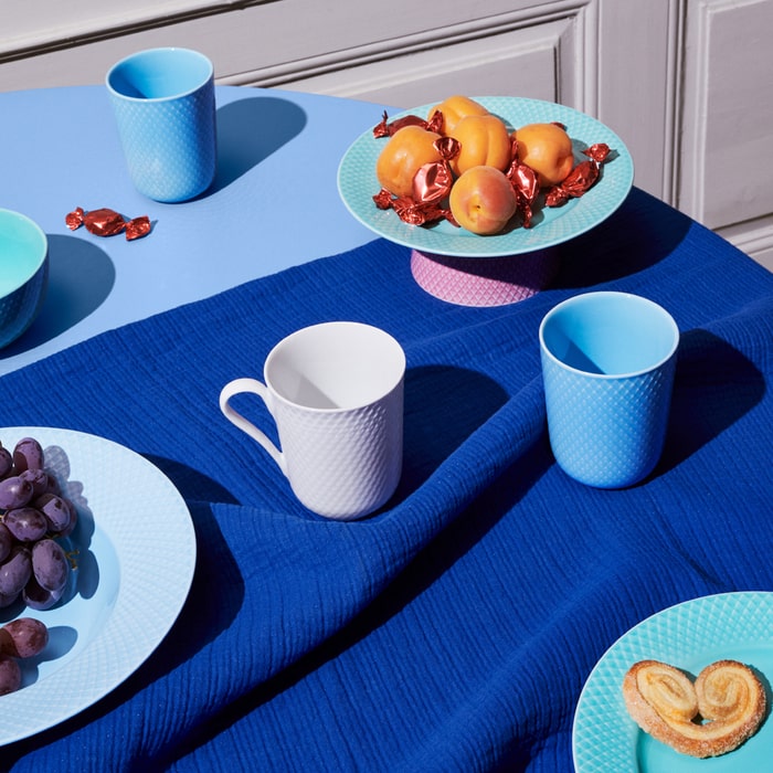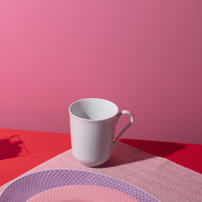 The classic Rhombe pattern made its debut on porcelain in 1961, on the oven-proof Danild range. Back then, it was applied to the porcelain as a pattern. In tribute to the classic pattern, it has had new life breathed into it, as a relief. This can be seen in the elegant Rhombe cup with handle, handmade in white porcelain. Sold in sets of two.