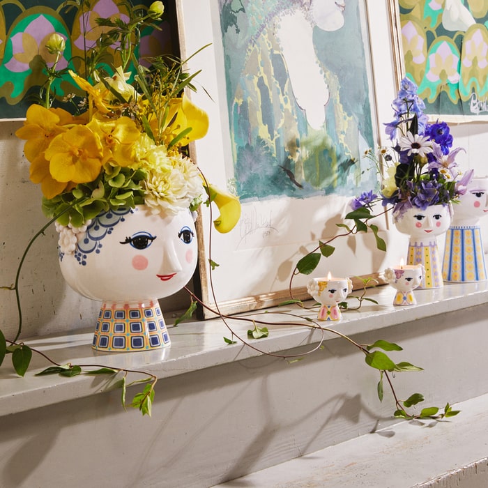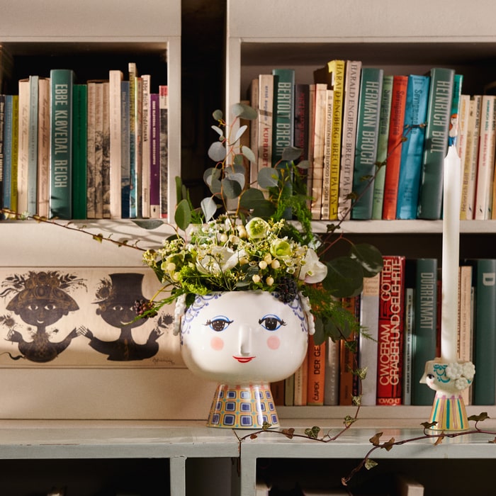 Versatile, iconic, and charming, the Eva Flower Pot in Blue is embellished with Wiinblad's familiarly flamboyant and colorful adornments, and can be used for everything from herbs to heather, white Christmas roses to trendy cacti.