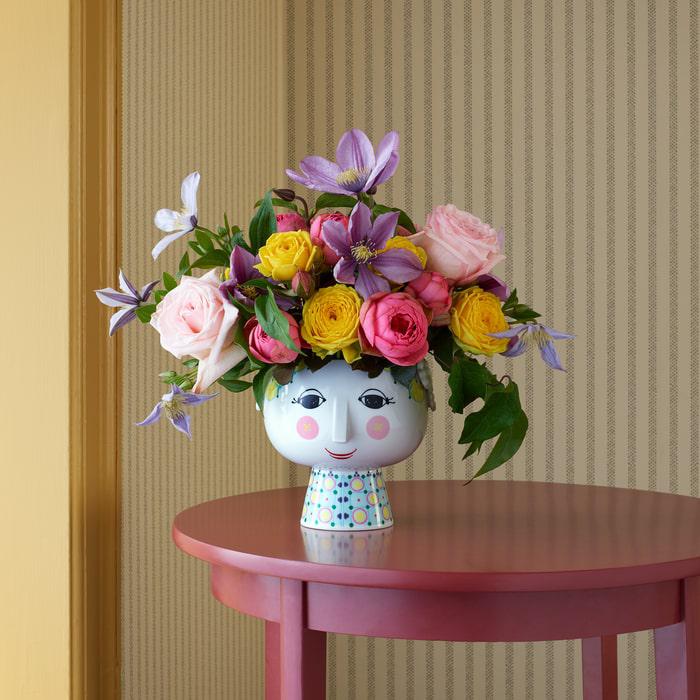 Bjørn Wiinblad represents everything that is whimsical, creative, and wonderful: just like Eva Flower Pot in Yellow. With her almond-shaped eyes, pointed nose, and lovely, dotted dress, Eva is a versatile piece for any design-lover's home.