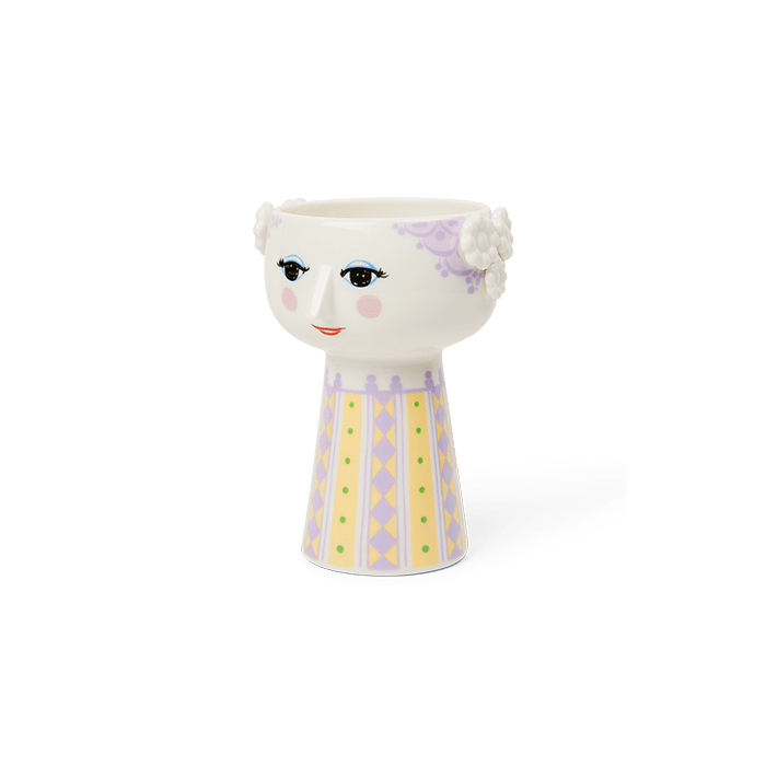 An exquisite, eye-catching addition to your home decor, the Eva Vase in Lavender is adorned with Bjørn Wiinblad's vibrantly flamboyant patterns.