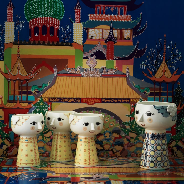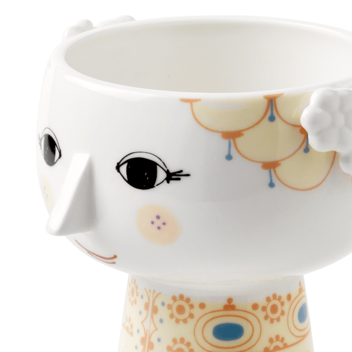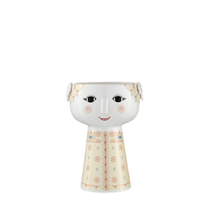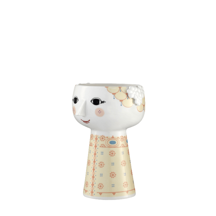 A gorgeous, creative addition to your home, the Eva Vase in Yellow is adorned with Bjørn Wiinblad's vibrantly flamboyant patterns and made of shining, glazed porcelain. At just 5.9" tall with a diameter of 3.9", the vase is perfect for a single flower.