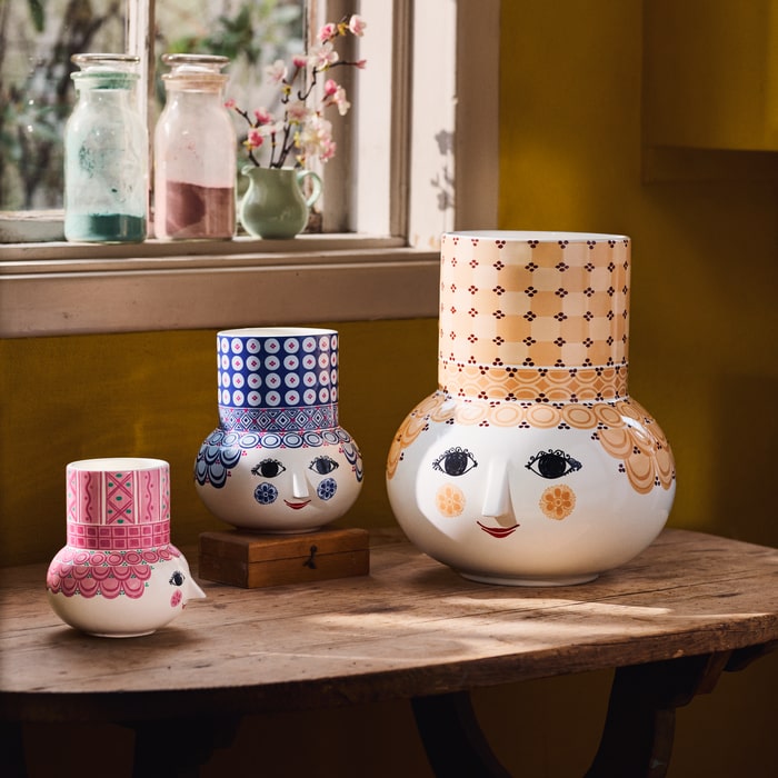 Unleash your vibrant personality and let your creativity shine with Bjørn Wiinblad’s Olga. With her cheerful smile, rosy cheeks, and colorful decorations, Olga captures the essence of Bjørn Wiinblad’s playful and artistic spirit – even in the form of a vase. Radiant and whimsical, she adds charm and personality to any space with her poetic details and lively hues. The Olga vase is a modern reinterpretation of an iconic piece originally created by Bjørn Wiinblad in collaboration with the renowned Nymølle ceramics factory. The new Olga vases feature the same cylindrical top as the original design and are adorned with a sweet, round face, almond-shaped eyes, and the signature triangular nose – a hallmark of Wiinblad’s artistic legacy.