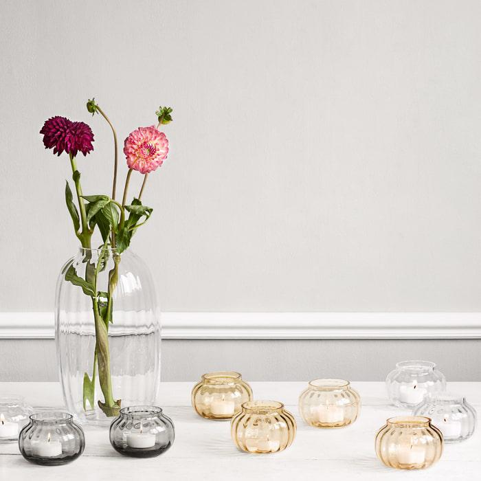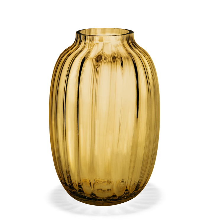 Available in both Clear and Amber, this Primula vase is 10" tall. With its aesthetically pleasing shape and fluted pattern, the vase looks particularly stylish on a dining table and complements any home. The simple, sophisticated look expresses a keen eye for detail.