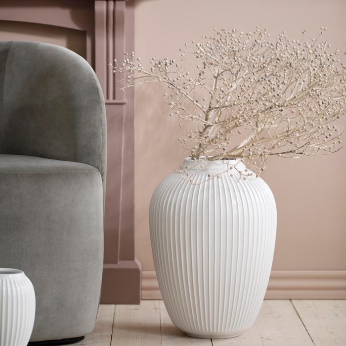 The Hammershøi floor vase is an impeccable element for your home and it will lend any room an artful and classic look with its impressive presence. Adorn the floor vases with green branches of the season, elegant individual flowers, or leave them empty to exude beautiful and sculptural elegance.
