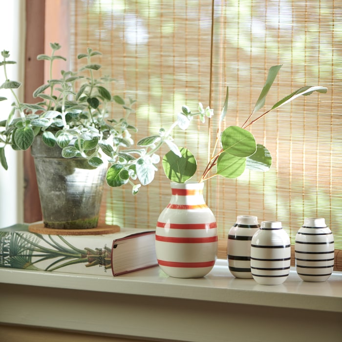 Omaggio Miniature vases from Kähler's in iconic black or pearl stripes. Each of the stripes are hand-painted.