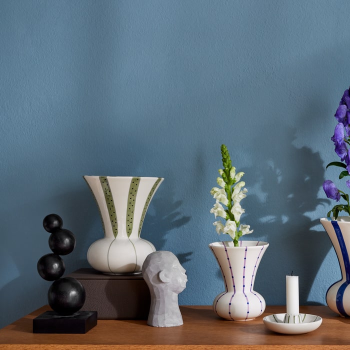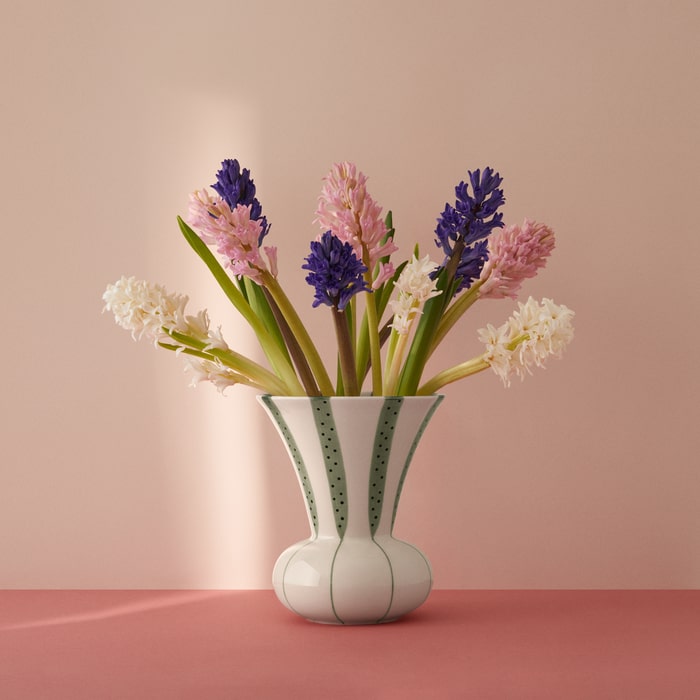 This charming vase from the Signature Collection has an included ceramic plate with holes inspired by the lotus planet's seed stand, which makes it possible to arrange the flowers exactly as you like them. Of course, the vase can also be used in the traditional way without the plate for a regular tied bouquet.