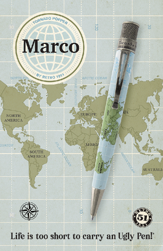 Marco Polo was known for being an explorer, merchant and writer traveling the Silk Road trading for rare and exotic goods he would take back to his country of Italy. He even wrote a book of his epic travels in The Travels of Marco Polo. This limited edition ballpoint is printed with the world map complete with stonewashed pewter trim and compass on the top disc. Pick one up and start planning your next epic adventure, just don’t do it during your Zoom meetings or school classes.