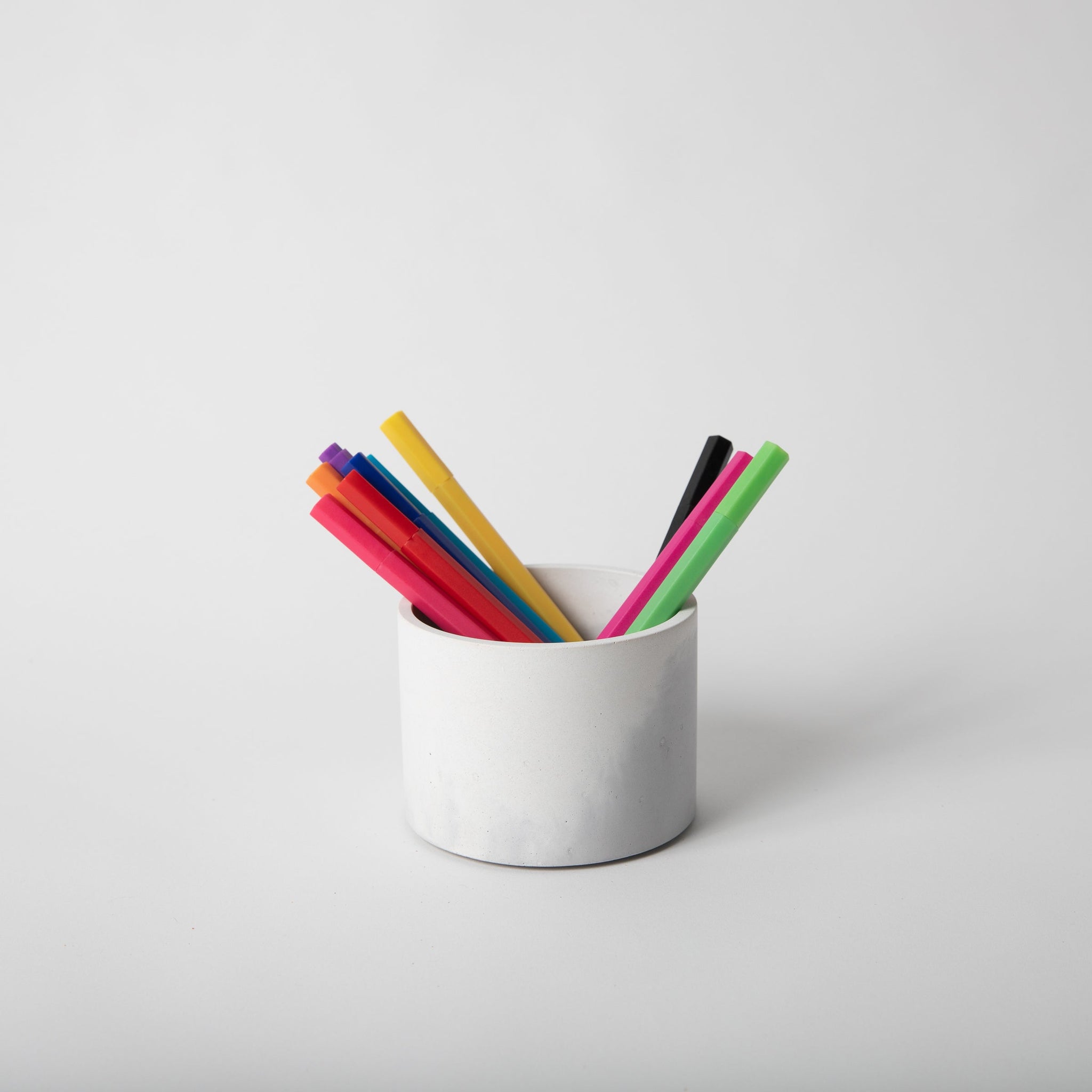 Get organized and put all those little nic nacs in a special place. This concrete vessel organizes and makes your desktop look cool....or just put a plant in it.