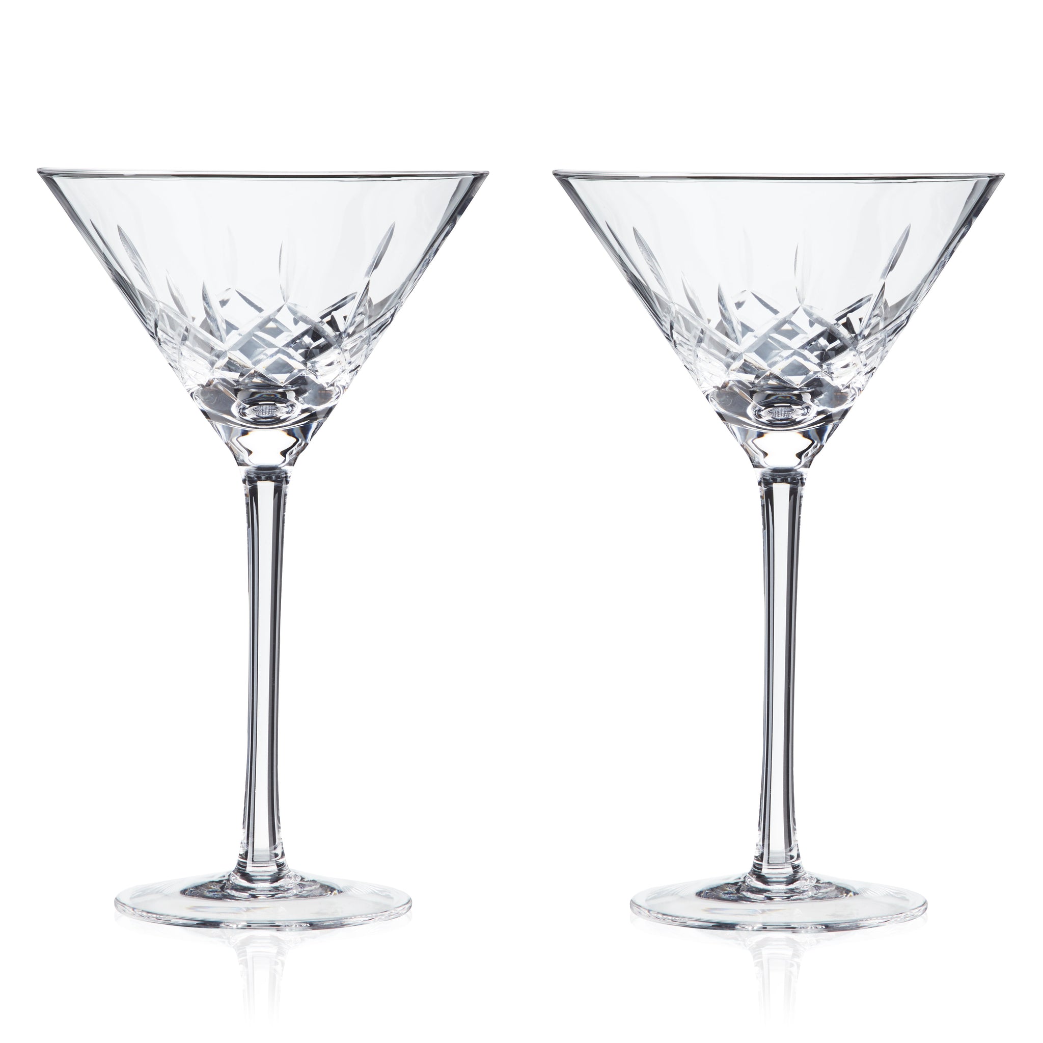 A pair of martini glasses is a home bar essential, but who says classic has to be boring? This set of two stemmed Martini glasses updates the iconic triangular silhouette with elegant geometric etching. It’s 5 o’clock somewhere.