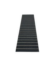 The CARL Rugs are woven on a traditional loom using wooden shuttles. For indoor or outdoor use, the rugs are reversible, machine-washable, and made from Swedish-manufactured certified PVC. Each rug features reinforced, welded edges for strength and durability.